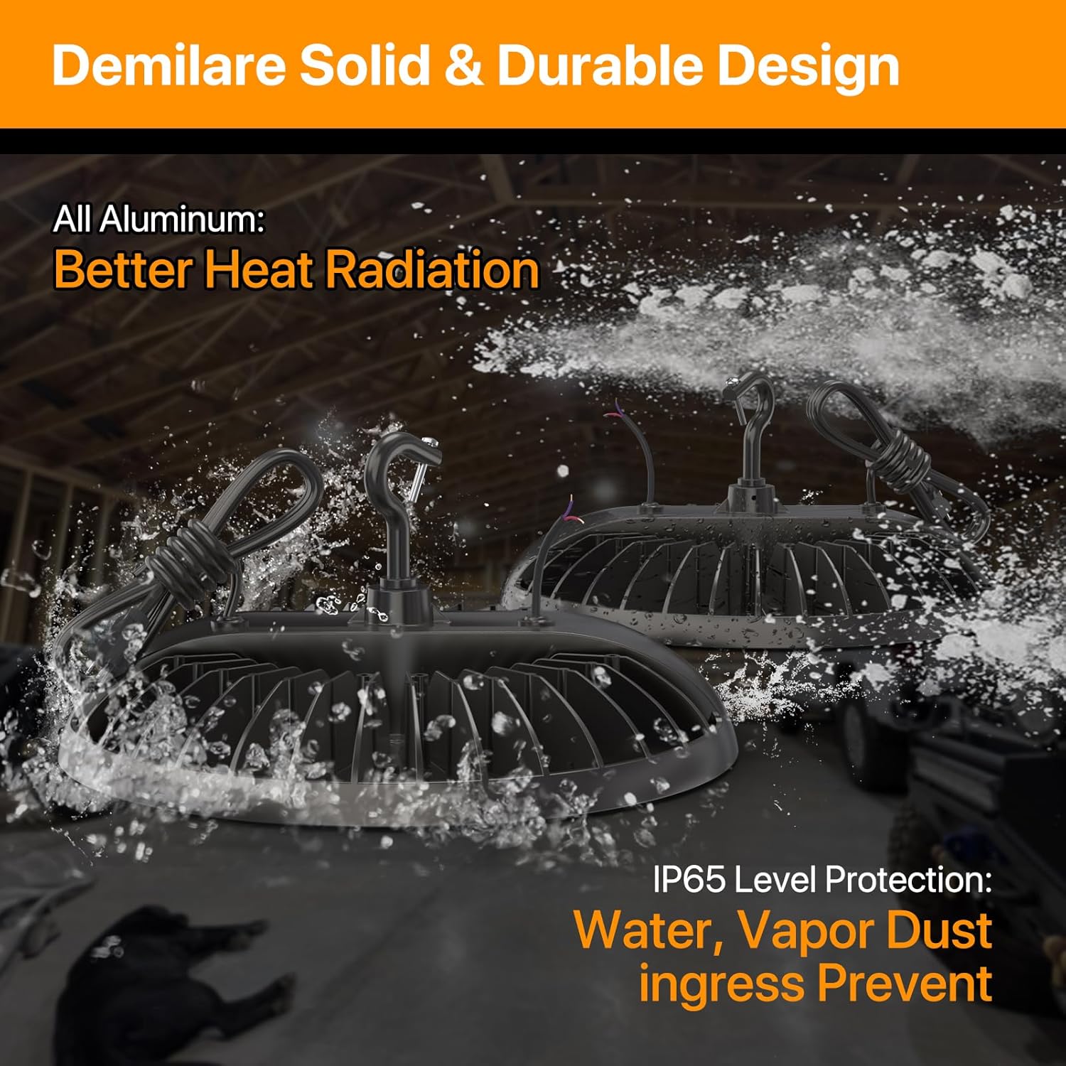 - Powerful Illumination: The DEMILARE 250W LED High Bay Lights deliver an outstanding brightness of 37,500 lumens, ensuring that your garage, warehouse, or pole barn is effectively illuminated with superior high bay lighting solutions.