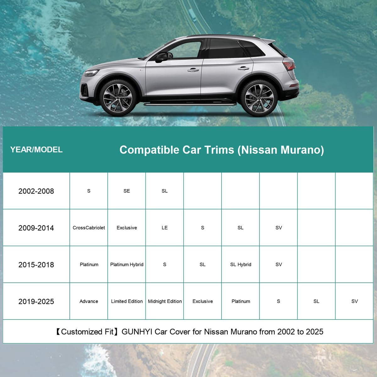 - 【Compatible with】This Full Car Cover Custom fit for Nissan Murano from 2002 to 2025. Comes with a microfiber towel that you can use to clean your car, because if there is sand on the surface of the car before use, it may damage the paint.