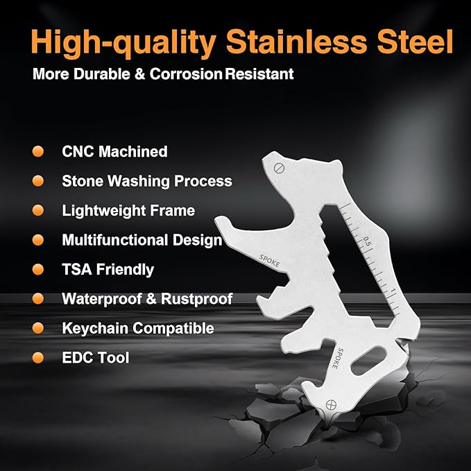 - 12-in-1 Tools: This pint-size multi-tool features Phillips & Flathead Screwdrivers, Lanyard Hole, Spoke & Hex Wrench, Bottle Opener, Ruler, Fire Starter, Survival Whistle, etc. for removing nails, measuring, bike repairing, etc