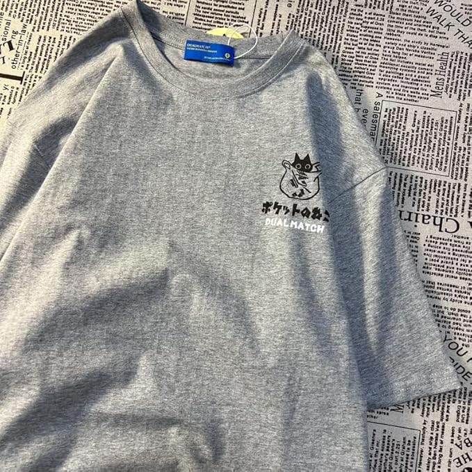 Womens Vintage Graphic Tee Shirt Cat Print Short Sleeve Loose Tunic Tops Gothic Oversized Punk Baggy Shirts