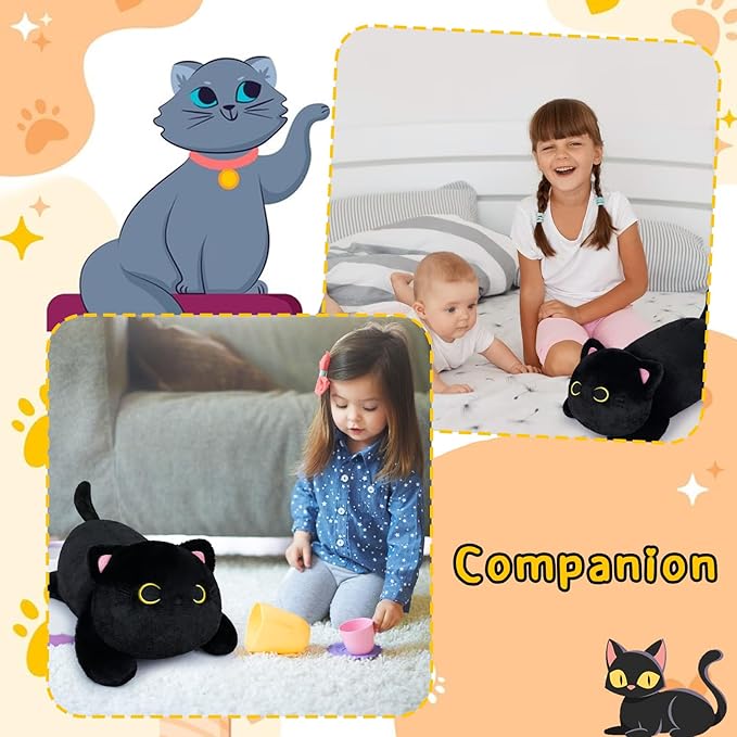 - Best Friend: Weighted black cat plush can become children's playmates, accompany them to grow up happy, black cat plush toys are also very good friends