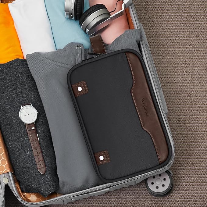- Travel Essentials: This portable travel toiletry bag is perfect for business trips, travel, gym, camping, and family outings. The design of Wedama toiletry bag is joined PU leather and embellished with metal elements, which makes it classic and stylish. Great gift choice for friends, boyfriends, and family for various occasions like birthdays, Father's Day, Christmas Day, and Valentine's Day.