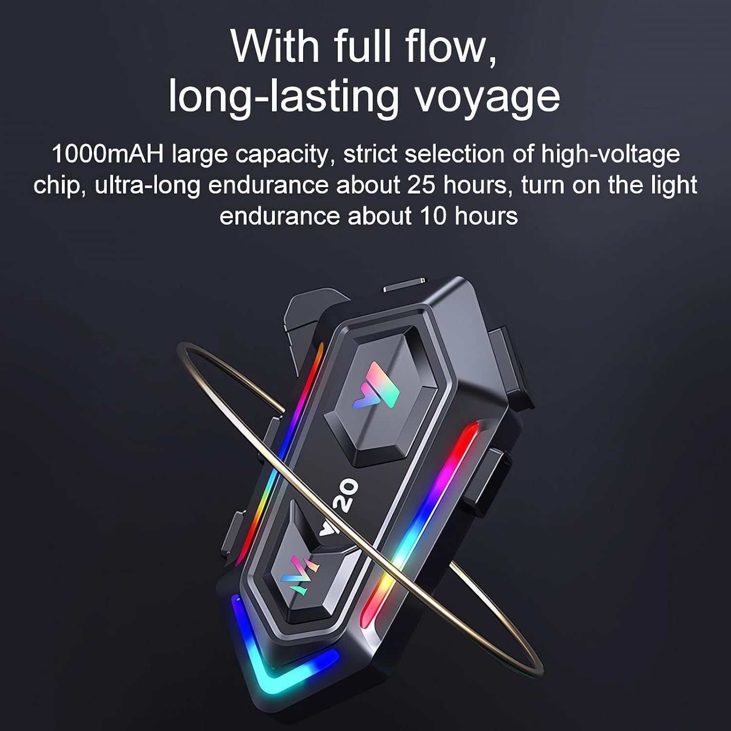 - 【User-Friendly Button Design & Cool RGB Breathing Light】The upgraded Y20 helmet speakers avoids frustrating button mistakes. We have carefully adjusted and optimized the position and size of the buttons to make it easy and comfortable to operate while riding. Switching between 16 vibrant lighting modes and customizing the look of your helmet make your helmet even cooler. It’s not just a motorcycle accessories, but also a companion which can add a touch of bright color to each journey.