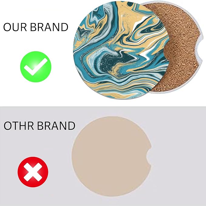 - Absorbent Car Accessories:Our car coasters are made of high quality ceramic stone with natural cork base. It can more quickly and effectively absorb tea, coffee beer and water. Stay dry and stay in a good mood.