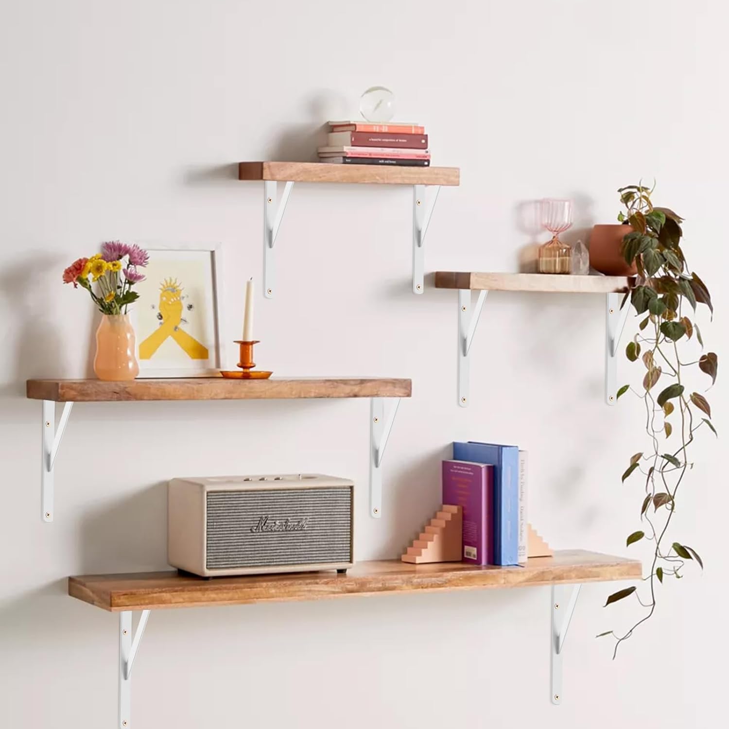 - 12-Pack shelf brackets: Maximize space with with style. Ideal for the kitchen, bathroom, bedroom, office & more. Our shelf brackets can be used as exhibition stand,bicycle stand,garden shelf, kitchen shelf,office shelf,etc