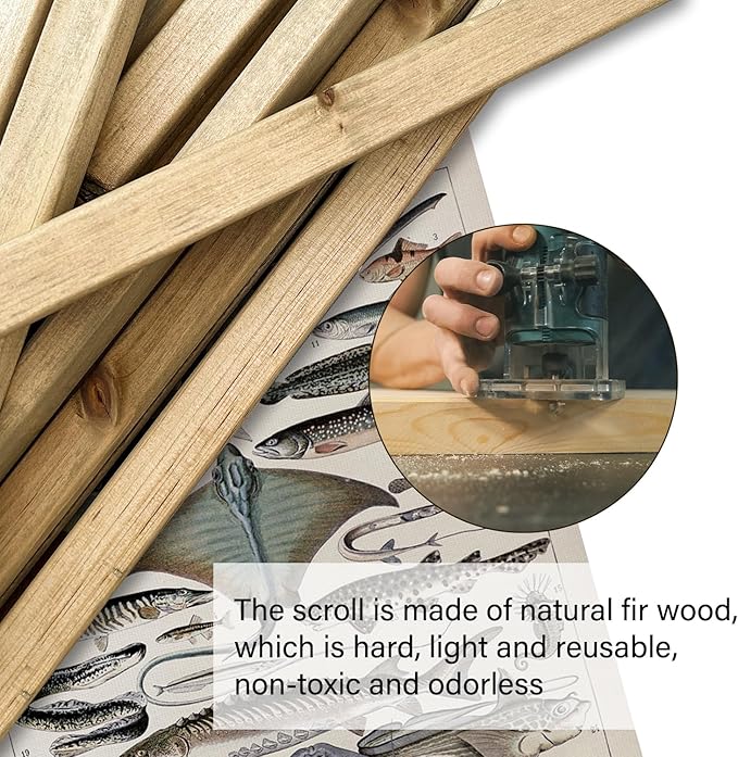 XIAOAIKA Vintage Fish Species Poster - Educational Oceanic Life Chart with Wooden Scroll Frame - Classic Nautical Wall Hanging Decor for Home, Office, or Classroom 12 x 16 Inches