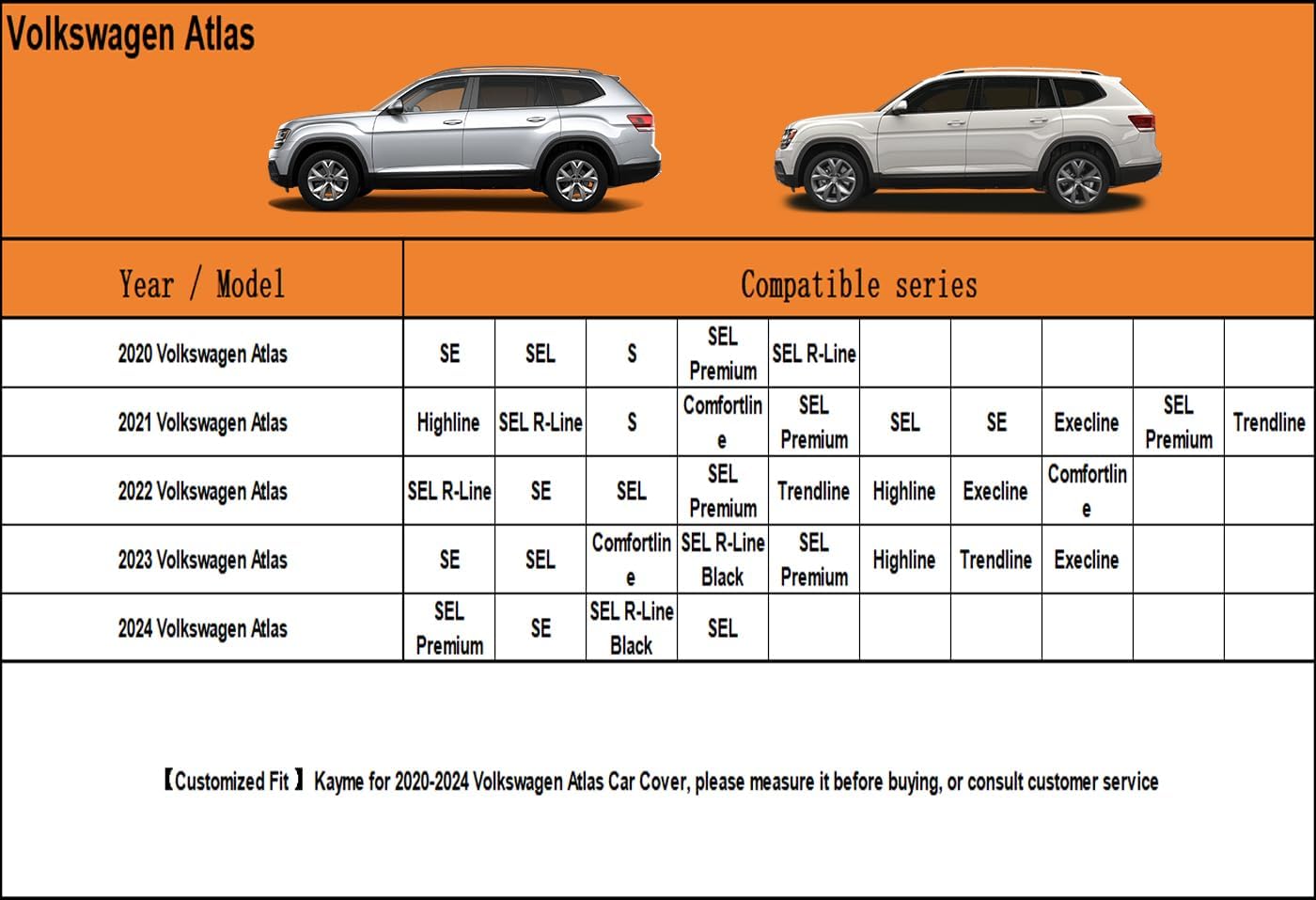 - 【Suitable for】— Custom fit for Volkswagen Atlas (2017-2025) . Come with a large enough portable bag to store your cover when you do not use