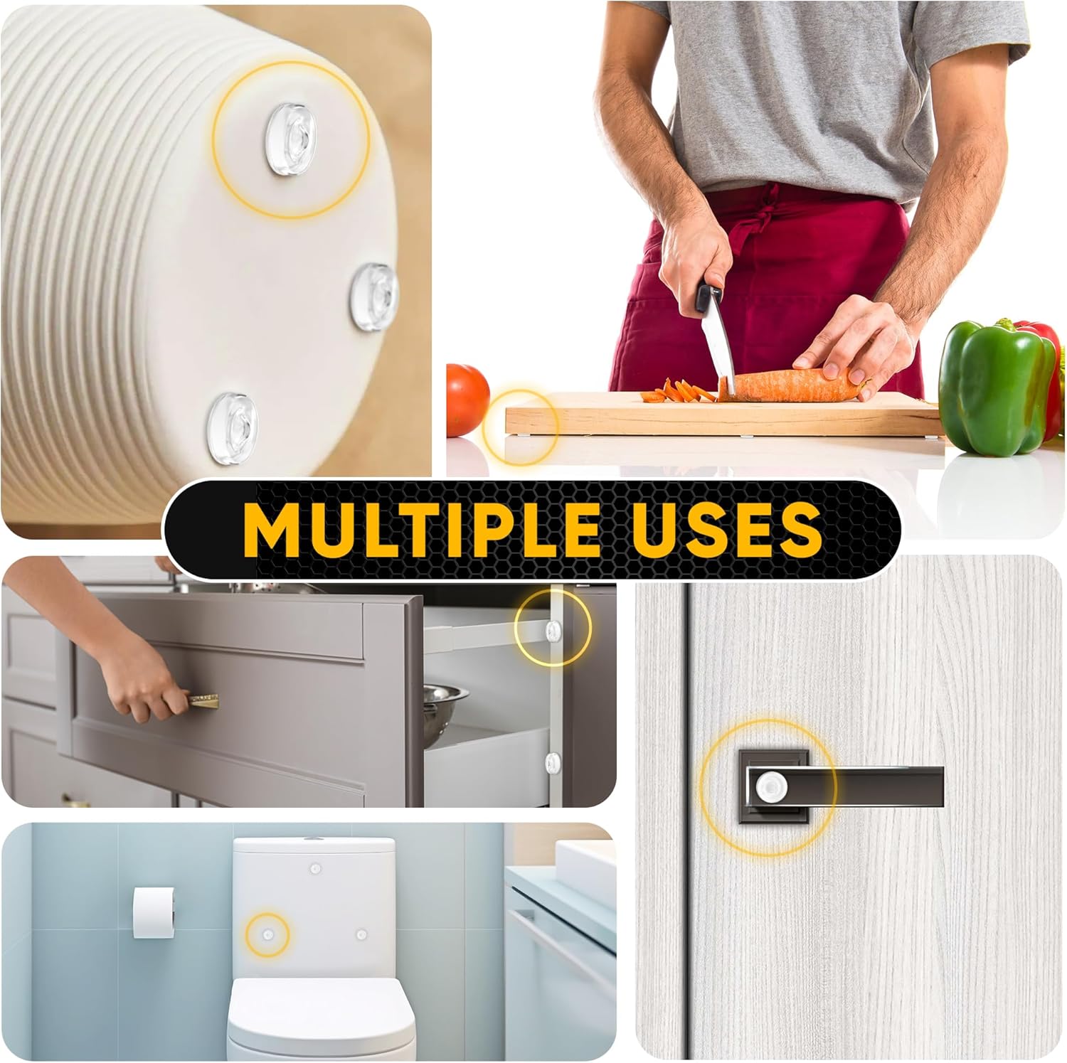- Strong Adhesive Layer: Thanks to the silicone bumpers self adhesive layer, you can place it anywhere you like within seconds! Our clear door bumpers easily stick to tables, desks, railings, cabinets, or any other furniture that needs cushioning or sound dampening. Multi-functional adhesive layer also perfectly sticks to glass, wood, metal, ceramic, and more
