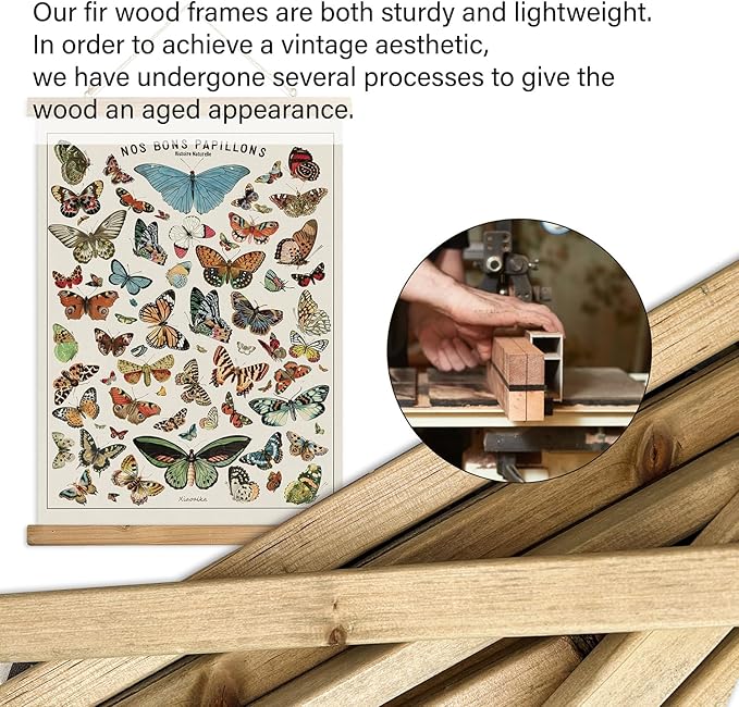 XIAOAIKA Vintage Butterfly and World Flowers Poster Set - Educational Insect and Botanical Wall Art with Wooden Hanging Frames, Decorative Prints for Home and Classroom 16 x 23 Inches
