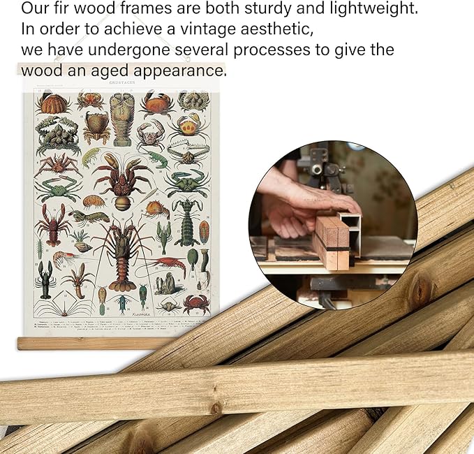 XIAOAIKA Set of 2 Vintage Marine Life and Crustaceans Wall Art Posters - Nautical Ocean Creatures & Seafood Illustration Prints with Wooden Hanger Frames for Home Decor 16 x 23 Inches