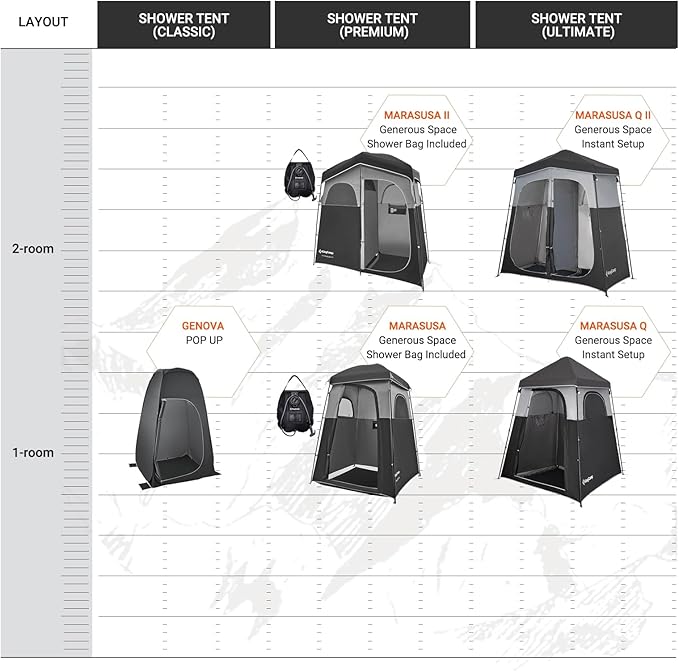 - QUICK SETUP & STORAGE: No tools required! Simply unfold the tent, extend the poles, and listen for the "click" sound to complete the setup. The entire process takes just 60 seconds, offering a hassle-free and quick shower tent experience. Comes with a storage bag for easy transport, with packed dimensions of 44" x 8" x 8".
