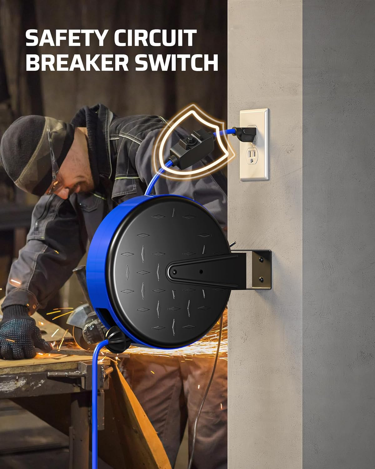 - [Safety 10A Circuit Breaker] Enhance safety with our UL certified electric cord reel, with a 10A circuit breaker, protecting devices from short circuits and overloads; If the total current exceeds 10A, it automatically cuts off power, preventing damage; simply press the reset button to resume operation