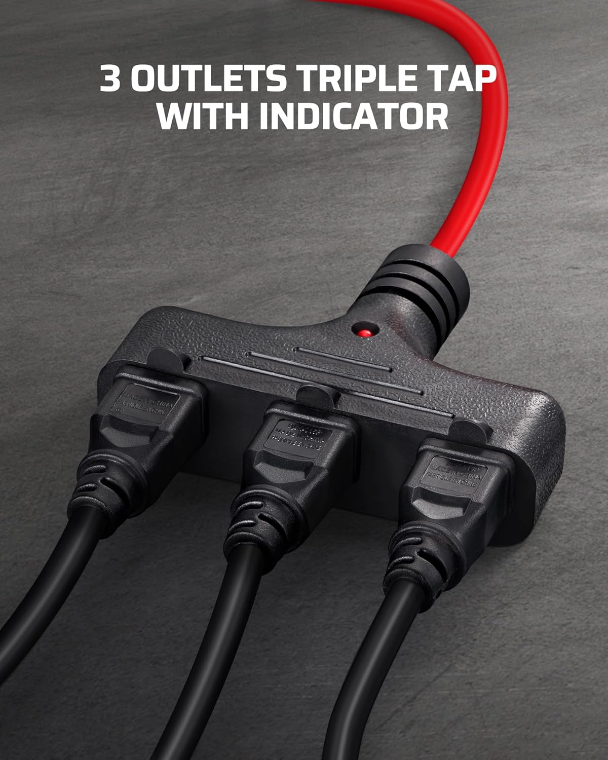 - [3 Grounded Triple Tap with Indicator] The grounded triple tap pigtail allows you to power multiple appliances simultaneously and maximize the usage of power strips and wall outlets; the indicator lights up to let you know the electrical cord is ready to use, vivid color PVC cable jacket makes it easy to find, even in a crowded space