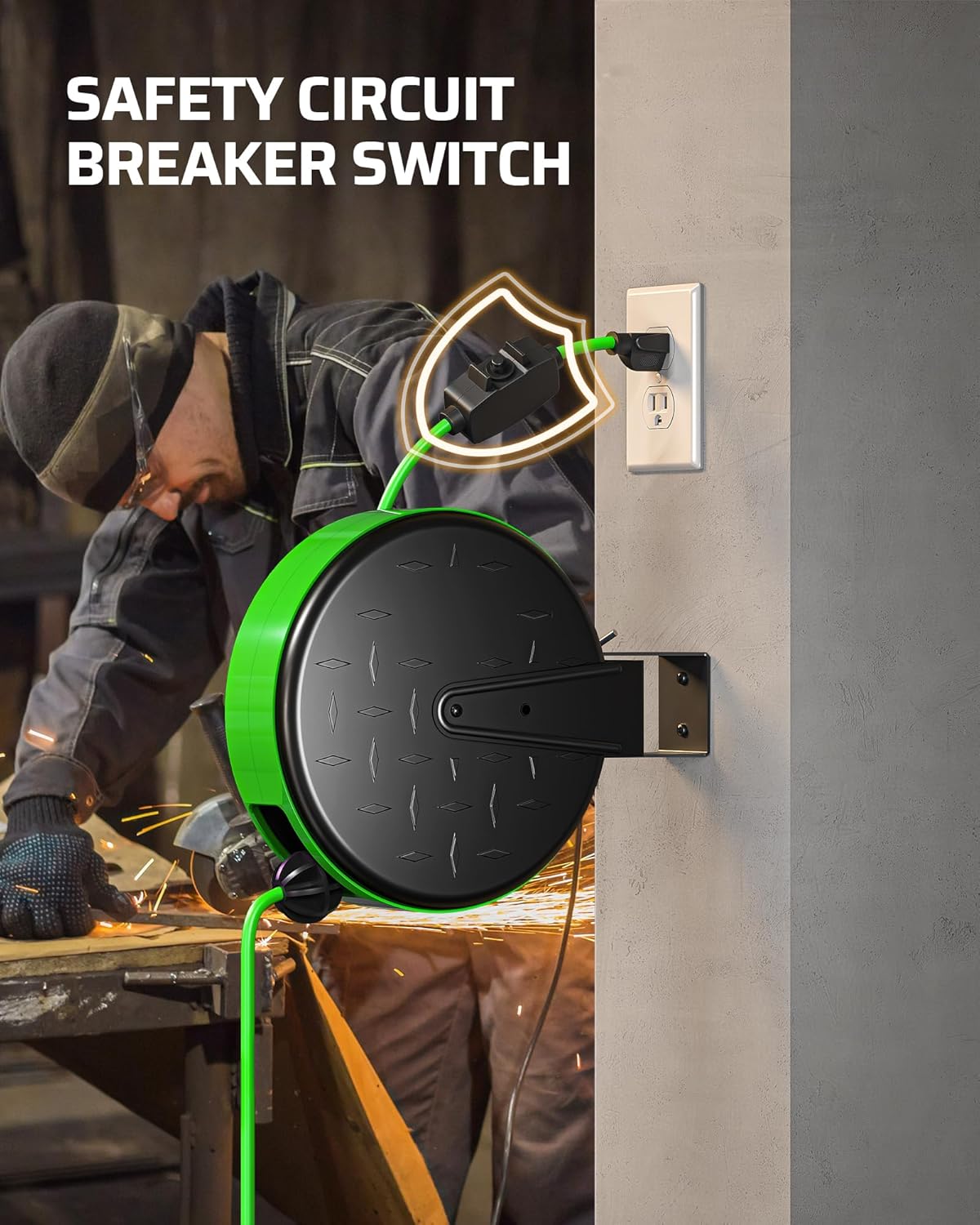 - [Safety 10A Circuit Breaker] Enhance safety with our UL certified electric cord reel, with a 10A circuit breaker, protecting devices from short circuits and overloads; If the total current exceeds 10A, it automatically cuts off power, preventing damage; simply press the reset button to resume operation