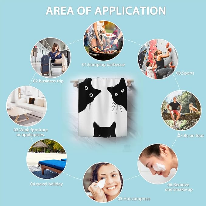 Black Cat Hand Towels - Set of 2, Soft Polyester Cotton Bath Towels - 14"X28"