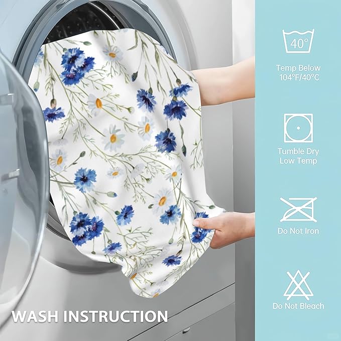 White Daisy Flowers Hand Towels Set of 2,Blue Cornflower Fingertip Towel Polyester Cotton Soft Bath Hand Towels for Bathroom Kitchen Hotel Spa Hand Towels 14"X28"