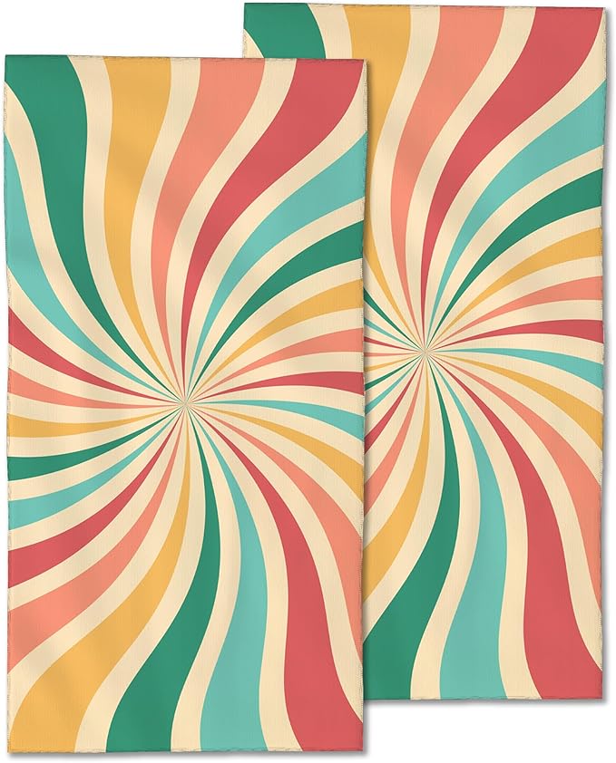 Boho Sunshine Hand Towels Set of 2,Groovy Retro Swirl Soft Fingertip Bath Towel Small Face Washcloths Decor Kitchen Towel for Hotel Spa Gym Sport 28x14in