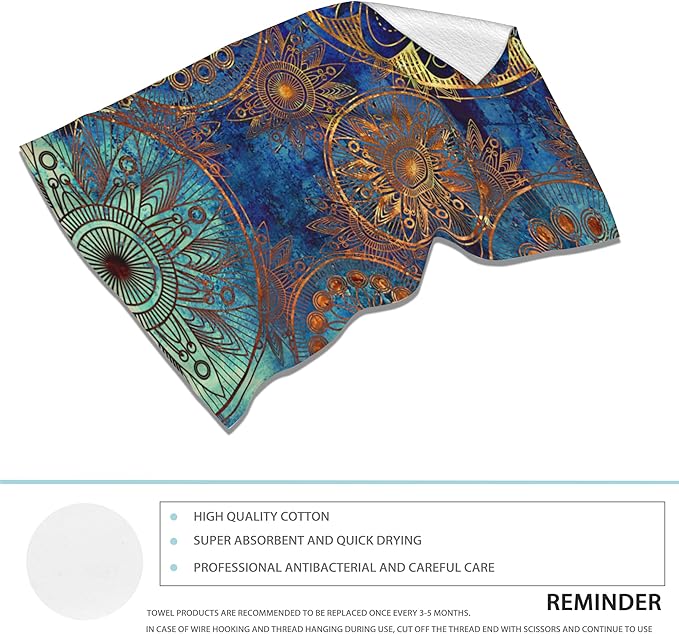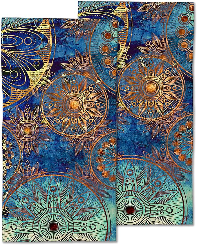 2 Pack Hand Towels for Bath,Golden Art Damask Floral Decorative Towels Highly Absorbent Soft Towels for Bathroom Beach Kitchen Spa Gym Face Towel 14x28 Inch