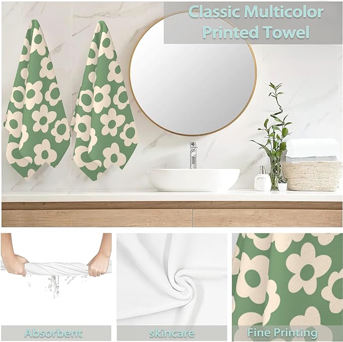 2 Pack Hand Towels for Bath,Vintage Groovy Flowers Decorative Towels Highly Absorbent Soft Towels for Bathroom Beach Kitchen Spa Gym Face Towel 14x28 Inch