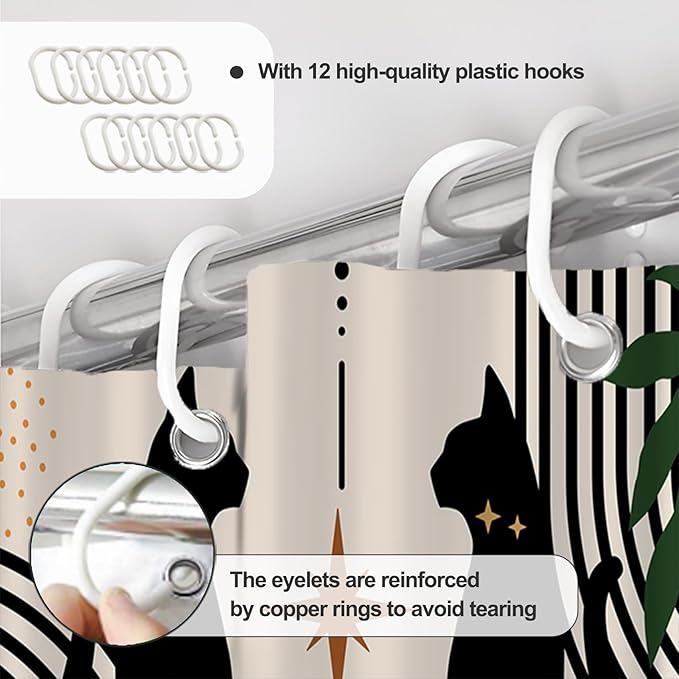 AWERT Boho Mid Century Shower Curtain Cute Cat Shower Curtain for Bathroom with Hooks Minimalist Abstract Waterproof Fabric 72x84inch