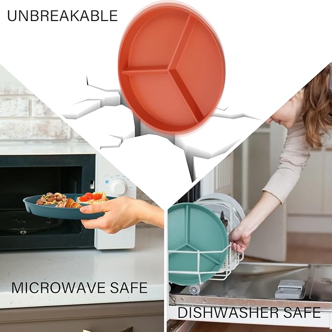- 【Microwave Safe & Reusable】 The plates with dividers are microwave and dishwasher safe. Making your food preparation and cleaning always convenient. A great replacement for traditonal plates. Note: Temperature resistant range between -4℉ to 248℉ (-20℃ to 120℃)