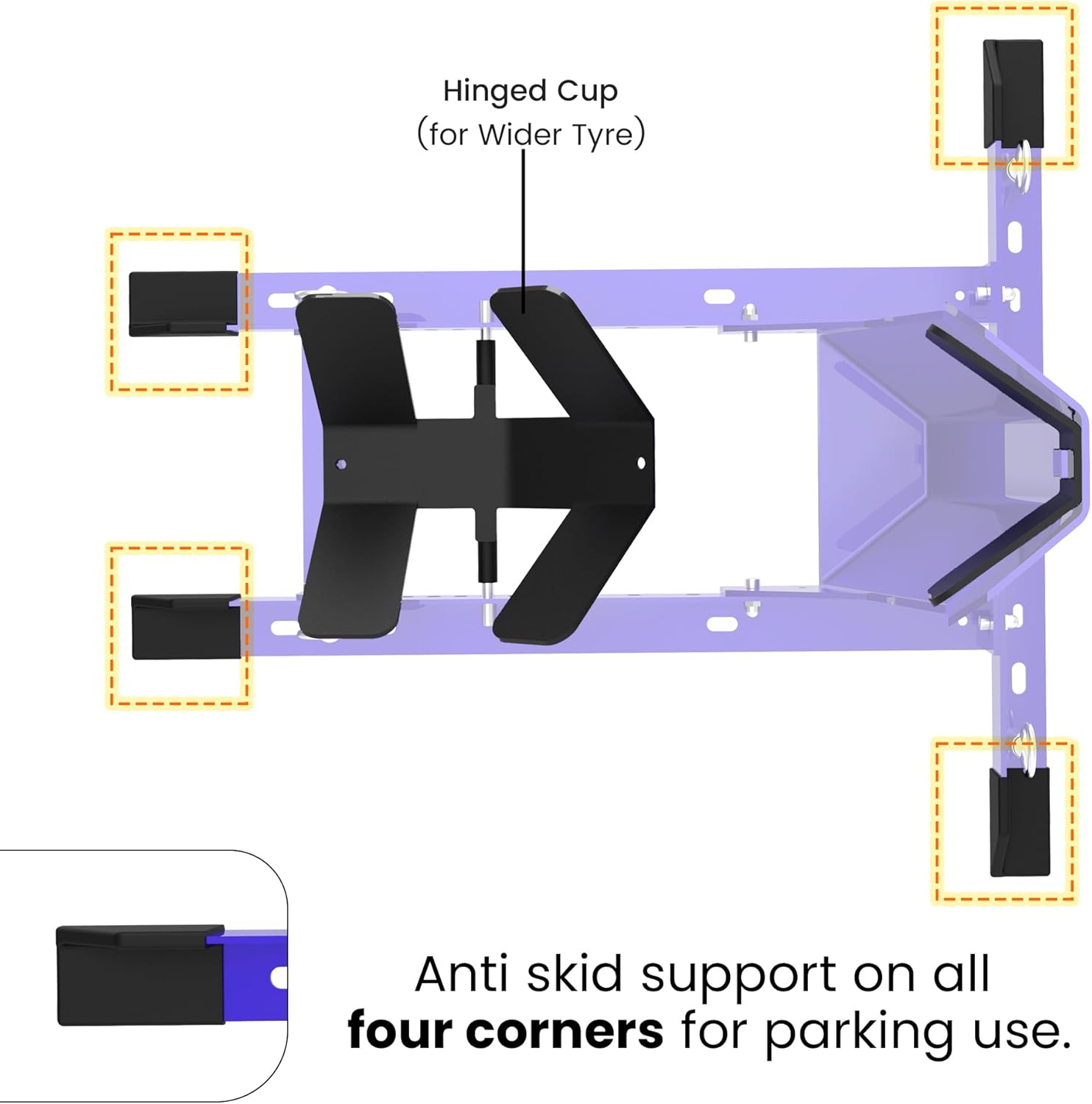- GRAND PITSTOP Universal Wheel Chock Stand will work on front and rear tires from 13" to 26". The locking mechanism effortlessly and securely supports your motorcycle in an upright position on all transportation Platform & Storage Spaces like House, Garages etc.