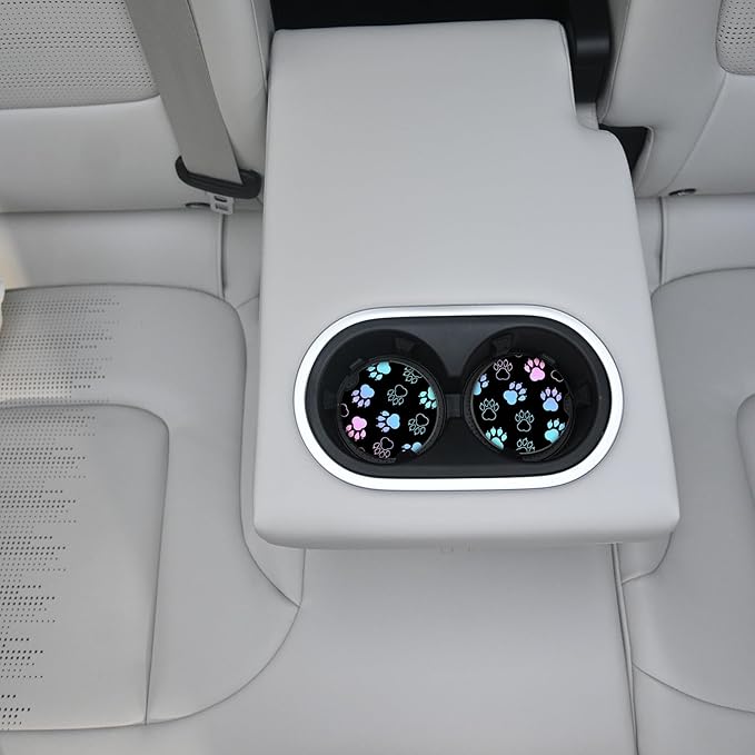 2 Pack Absorbent Car Coasters for Cup Holders,Ceramic Coasters with Cork Back and Finger Slot, Auto Accessories for Women & Men,2.56"(Gradient Black Dog paw Print)