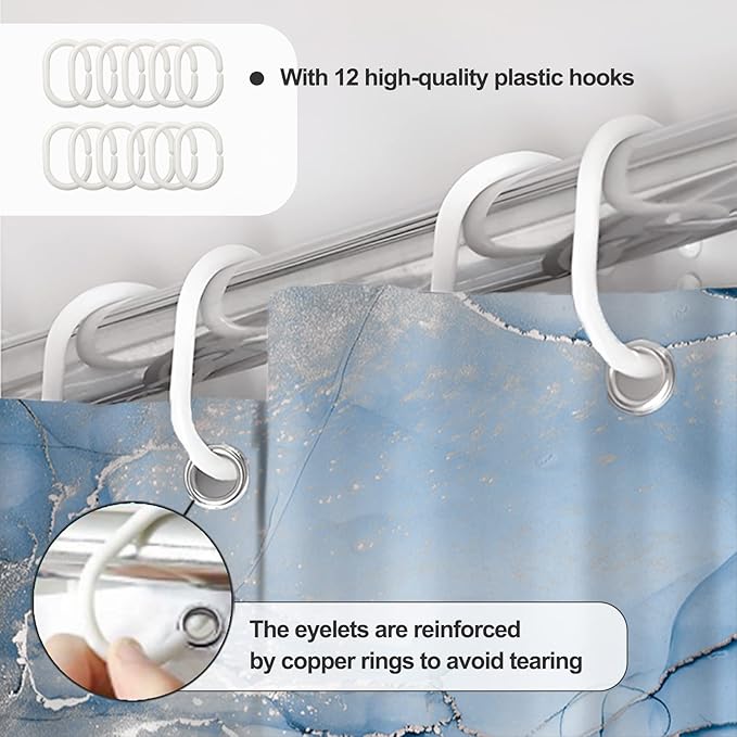 - 【UNIQUE DESIGN】 Sleek and modern marble shower curtain is made of fabric combines white and blue marble ink pattern which really perks up the room artistic.
