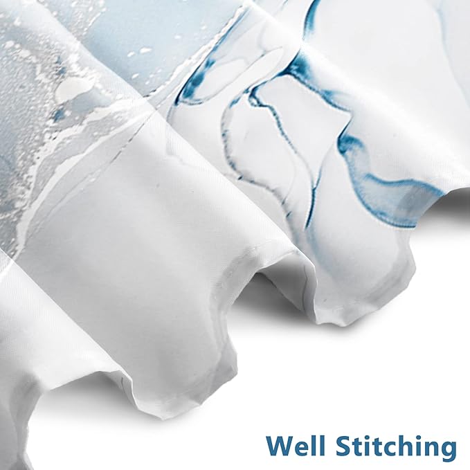 - 【UNIQUE DESIGN】 Sleek and modern marble stall size shower curtain is made of fabric combines white and blue marble ink pattern which really perks up the room artistic.