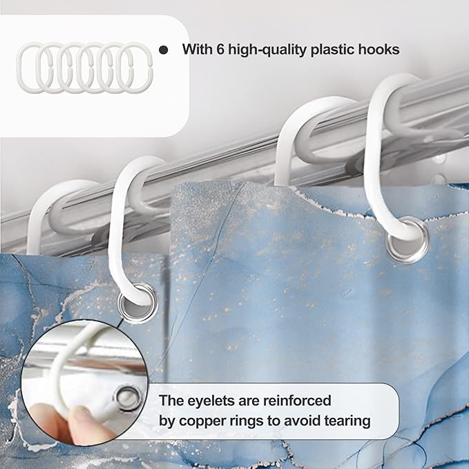 AWERT Blue Marble Shower Curtain for Bathroom Modern Blue White Marble Ink Shower Curtain with Hooks Washable Bathroom Accessories Bathtub Decor 36x72inch