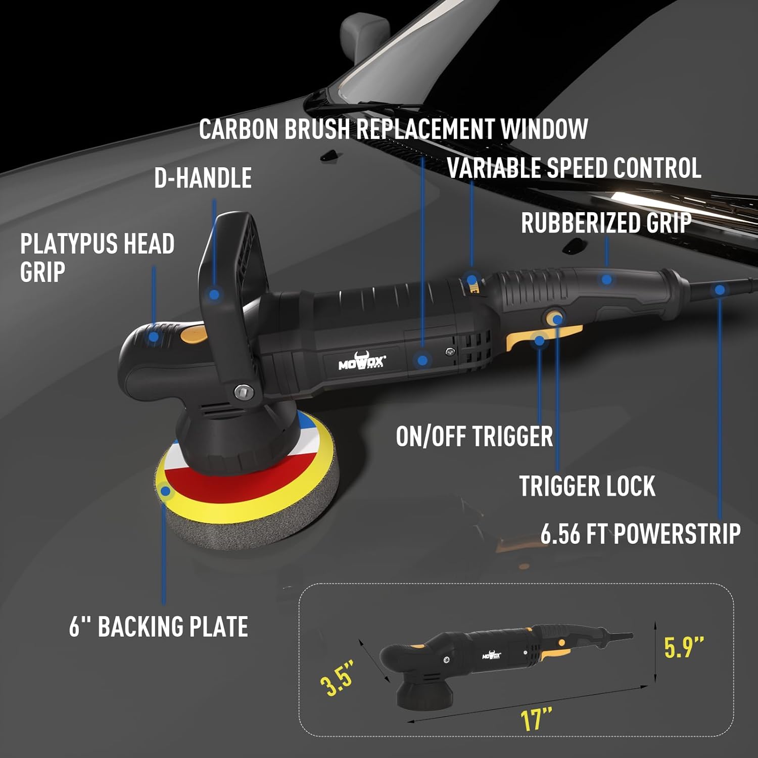 - 🍀DUAl-ACTION: 6" car polisher boasts a 15mm range of dual action, significantly broadening the polishing area and enabling swift, efficient completion of your tasks.