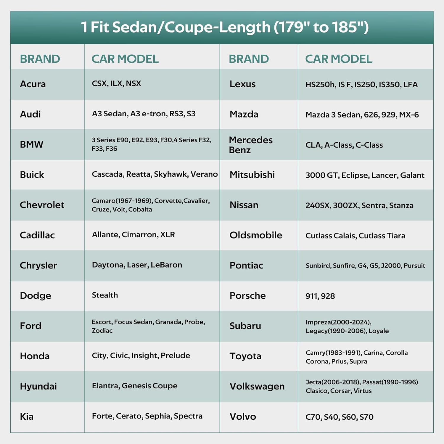 - 【CHOOSE THE RIGHT MODEL】: Molebt car cover fits Sedan & coupe 179 to 185 inch. For example Toyota Corolla/Prius, Kia Forte, Nissan Sentra, Hyundai Elantra, Honda Insight, Ford Focus(Sedan), Chevy Cruze/Volt, Volvo S40, VW Jetta, Lexus IS250/300/350, California etc.