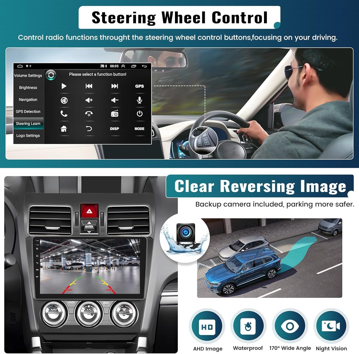 - 🍎【Wireless Apple CarPlay, Wireless Android Auto】Car Radio for Subaru Forester WRX Impreza 2013 2014 2015 with wireless/wired CarPlay Android Auto voice control, connects the car radio with your smart phone to voice control to access map navigation, phone contacts, music, video and email etc. Double din Android 13 car stereo features quad core processor, 2G RAM, 64G ROM, HiFi Sound Effect, 9 inch HD capacitive touchscreen, WiFi, FM/RDS radio