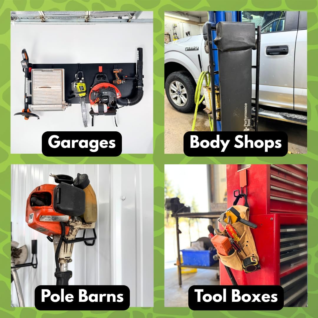 - GARAGE STORAGE SYSTEM: Gator Magnetics MEGA Open Hook 4 Pack is the perfect garage tool organizer. Our magnetic heavy duty garage hooks hold up to an astounding 45 lbs and affix to any steel surface, making them ideal as ladder hooks, tool hooks, or a weed eater hanger in your garage