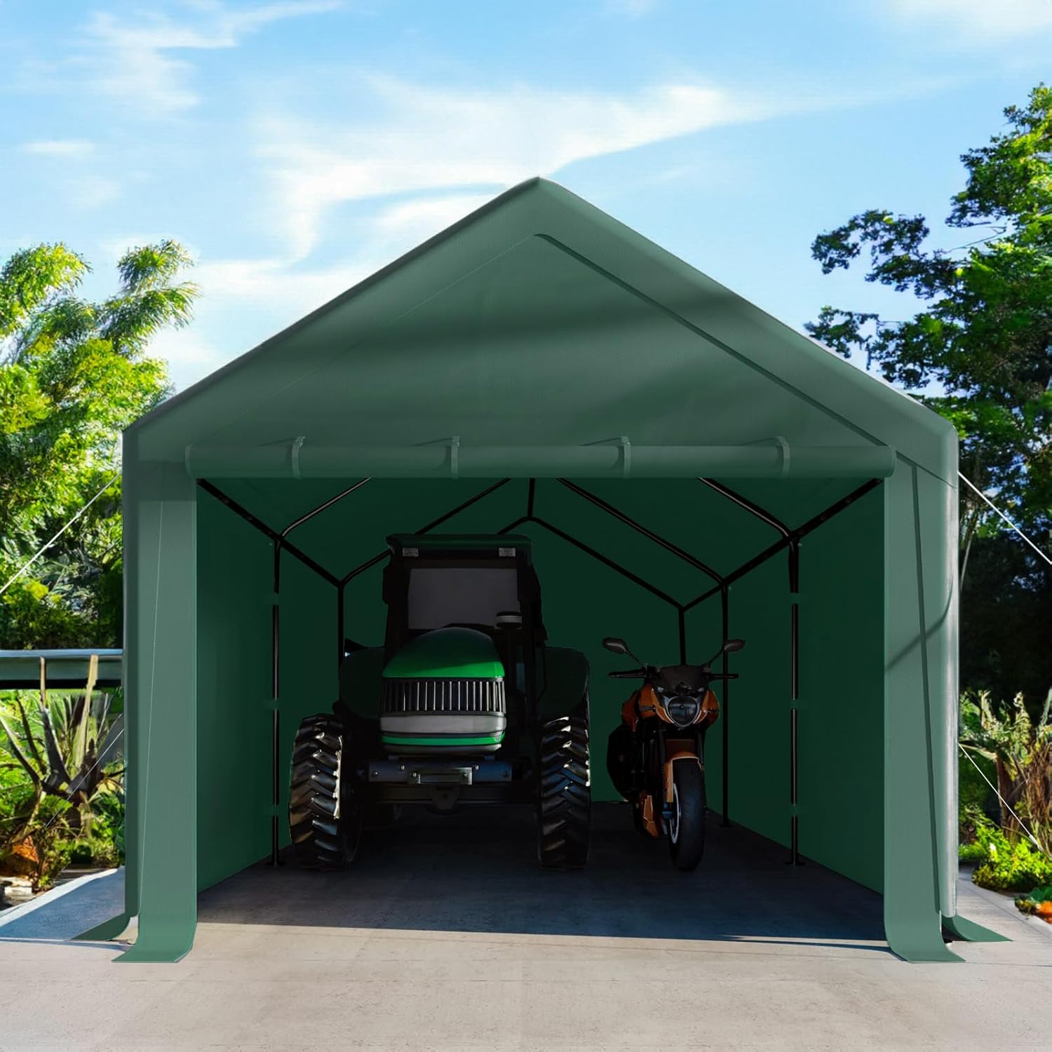 10x20ft Heavy Duty Carport with Removable Sidewalls,All Weather Carport Garage Party Tent Large Outdoor Canopy Storage Shed for Auto,Truck,Boat,Party (Green)