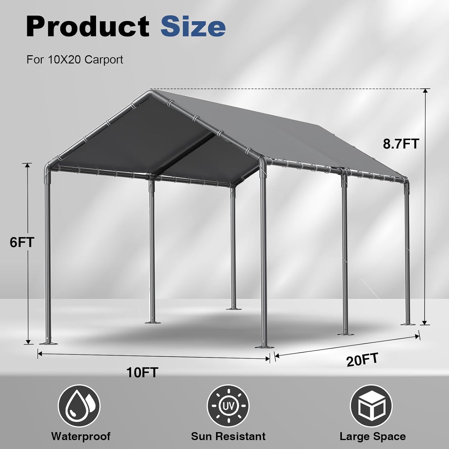 - 【More Durable Material】The cover of the carport is a little smaller than the frame so the bungee cords can pull tarp tight , like 2” gap on all sides ,so the snowy will not insane accumulation.The tarp cover of the car tent is fasten by elastic snap rather than cheap Velcro, which make the car port more durable and elegant.