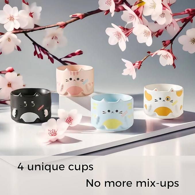 - No More Mix-Ups: Tired of accidentally grabbing someone else's mug? Our set of four different kitty mugs ensures that each member of your household or office can have their own unique mug. Never mix up your mug again and enjoy your drink with a touch of personalization.
