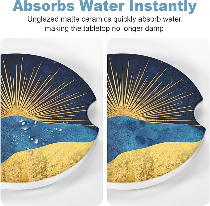 - 【Pragmatic Absorbent Coasters】Our products are not only stylish, but also have strong water absorption. Using unique technology, they have excellent water absorption. Ceramic car coasters are more absorbent than other coasters made of all-softwood, leather, cardboard, and rubber. Don't worry about cold drinks condensing and staining your car. Keep your car dry and clean.