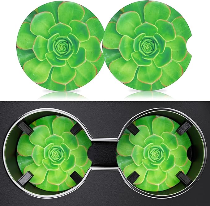 - 【Car Coaster Size】 Our coaster has a maximum diameter of 6.6 cm, which fits most car cup holders, and a thickness of 0.58 cm. The set includes 2 round, universal, absorbent ceramic car coasters. We recommend measuring the diameter of your car cup holder before purchasing to ensure compatibility.