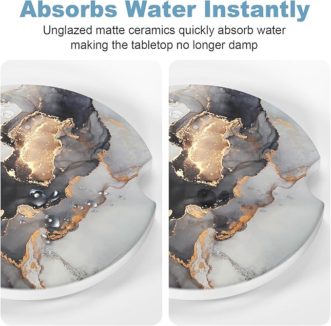 - 【Pragmatic Absorbent Coasters】Our products are not only stylish, but also have strong water absorption. Using unique technology, they have excellent water absorption. Ceramic car coasters are more absorbent than other coasters made of all-softwood, leather, cardboard, and rubber. Don't worry about cold drinks condensing and staining your car. Keep your car dry and clean.