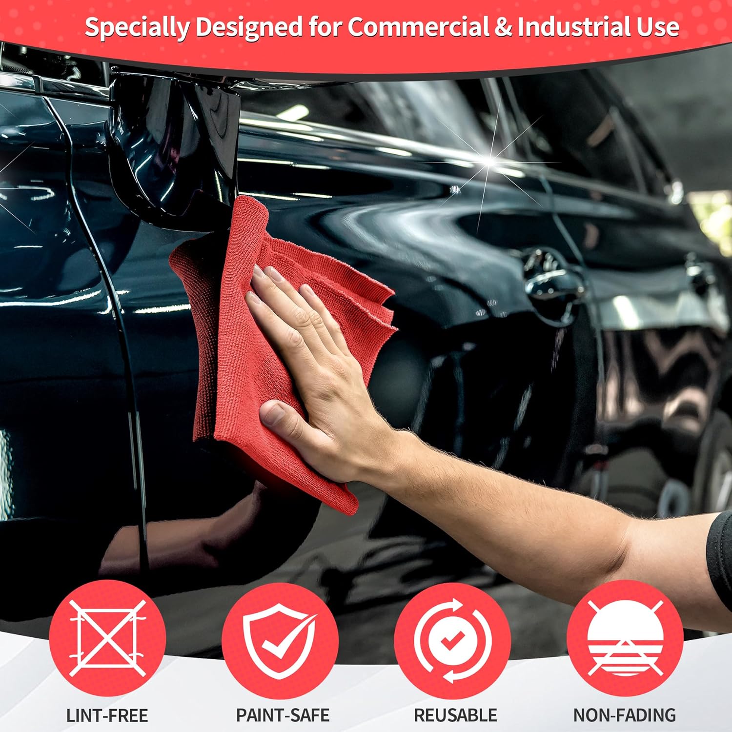 - Non-Abrasive & Paint-Safe: Size 11.5" x 11.5", high capacity, economical 100 Pack. Featuring a sonic cut edge, our microfiber shop towels prevent scratching any surfaces including paints, stainless steel, glass, or ceramics in dry or wet conditions. Ultra-soft without tags and seams, these cleaning rags can block scratching issues even on paints, or coats. They accommodate all surfaces, great for wiping household surfaces or polished furniture.