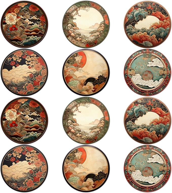Trillionn 12 Pack Felt Cup Coasters for Drink, Absorbent Coasters for Coffee, Japonisme Pattern Design