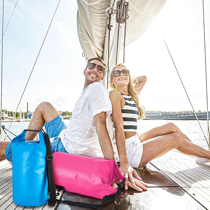 - Quality Material for Protection: our waterproof dry bags are made of PVC material, ensures resilience, robustness, and impermeability, allowing them to effectively shield your essentials from water, sand, dust, and dirt; Besides, this material is lightweight yet durable, providing a long lasting solution for your adventurous needs