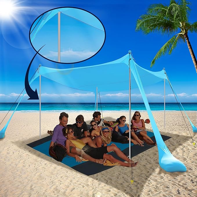 - [Multi-Purpose Use]: Beach sunshade tent are suitable for many occasions, such canopy, awning, beach shelter, lake fishing or other uses, you can set up a tent with them, an essential tool for your outdoor travel