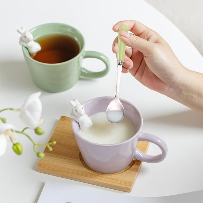 - ☕High Quality and Healthy Rabbit Coffee Cup: This Kawaii mug is lead-free. And the Bunny coffee mug is made of high quality ceramic, with smooth glaze, delicate and moisturizing. The cute ceramic bunny tea cup with lid and spoon.