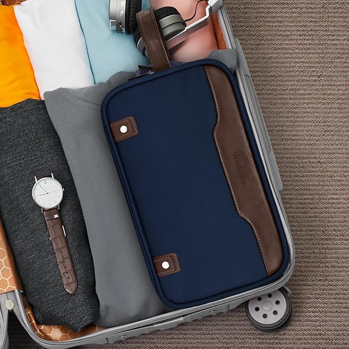 - Travel Essentials: This portable travel toiletry bag is perfect for business trips, travel, gym, camping, and family outings. The design of Wedama toiletry bag is joined PU leather and embellished with metal elements, which makes it classic and stylish. Great gift choice for friends, boyfriends, and family for various occasions like birthdays, Father's Day, Christmas Day, and Valentine's Day.