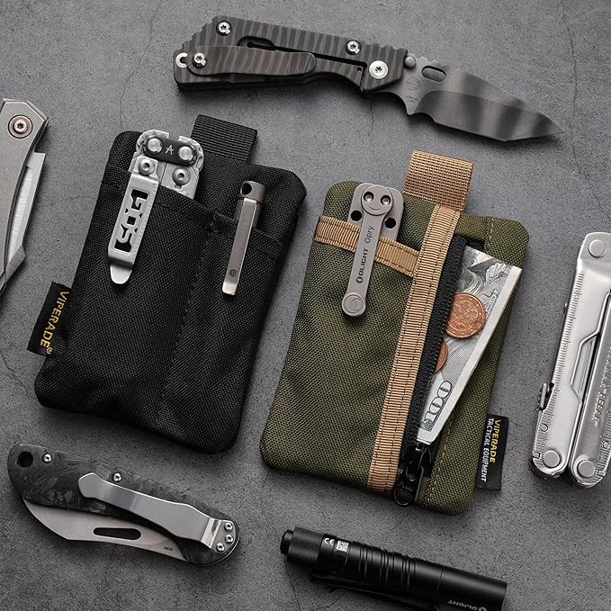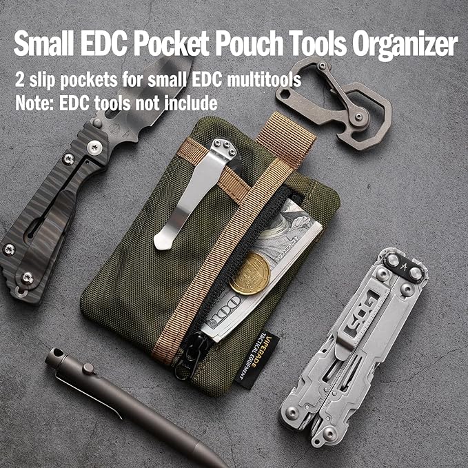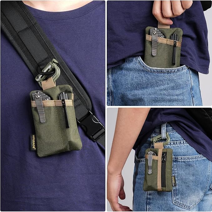 - Multiple Organized Compartments: The tool utility pouch has 3 slots and a zipper pocket, which is great for separating different small items, and is easy to access. They are suitable for holding cards/small notebook/tactical pen/small flashlight/tactical knife and other EDC items. The pocket design and slot design ensures that items are securely stored in this small organizer.