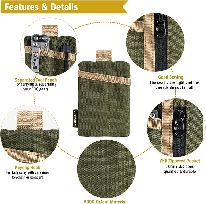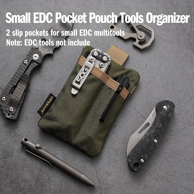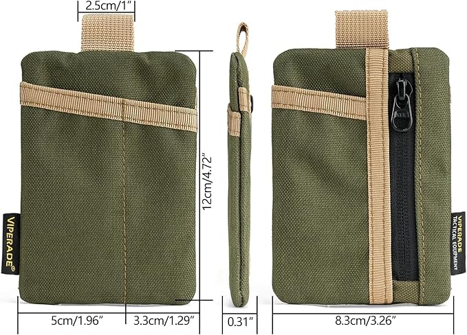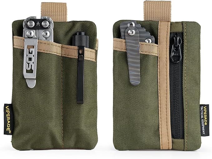 VIPERADE VE29 EDC Pouch Organizer With 3 Slots and Zipper Pocket for Everyday Carry Gears (Green/Tan)