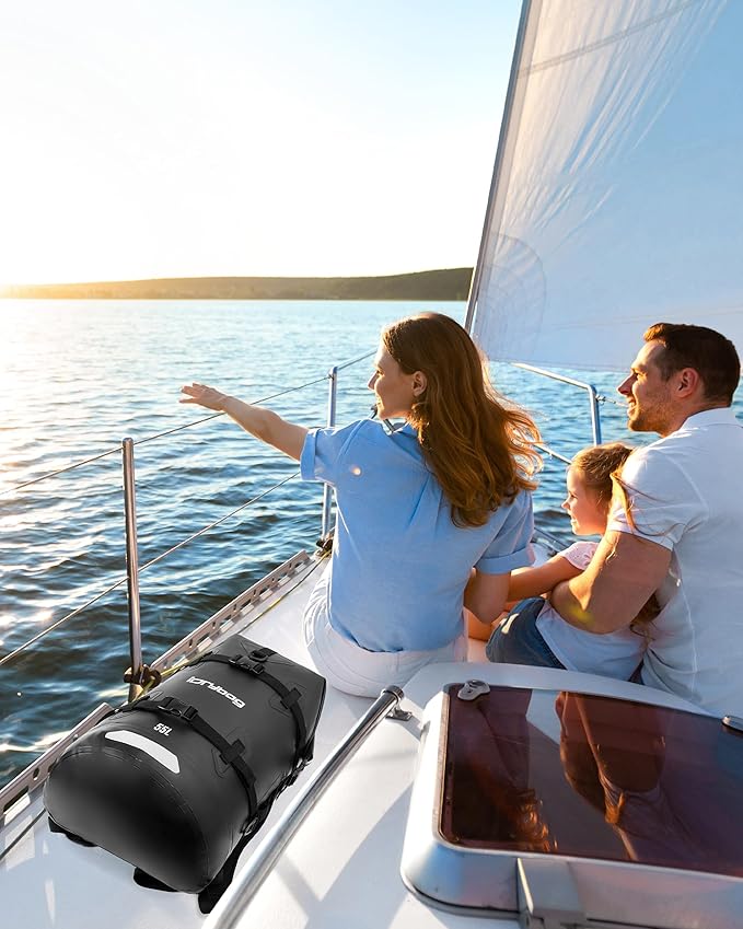 - [EXTRA LARGE STORAGE SPACE]:Boat bag is available in 35L/55L/85L capacity,roll top backpack has large opening for easy access to items,MOLLE system loop straps on the side of waterproof dry bag provide point of retention,and hook and loop closure on bottom is designed for easy locking.Reflective strips on the bottom of waterproof case increase travel safety,let him protect you on your trip.