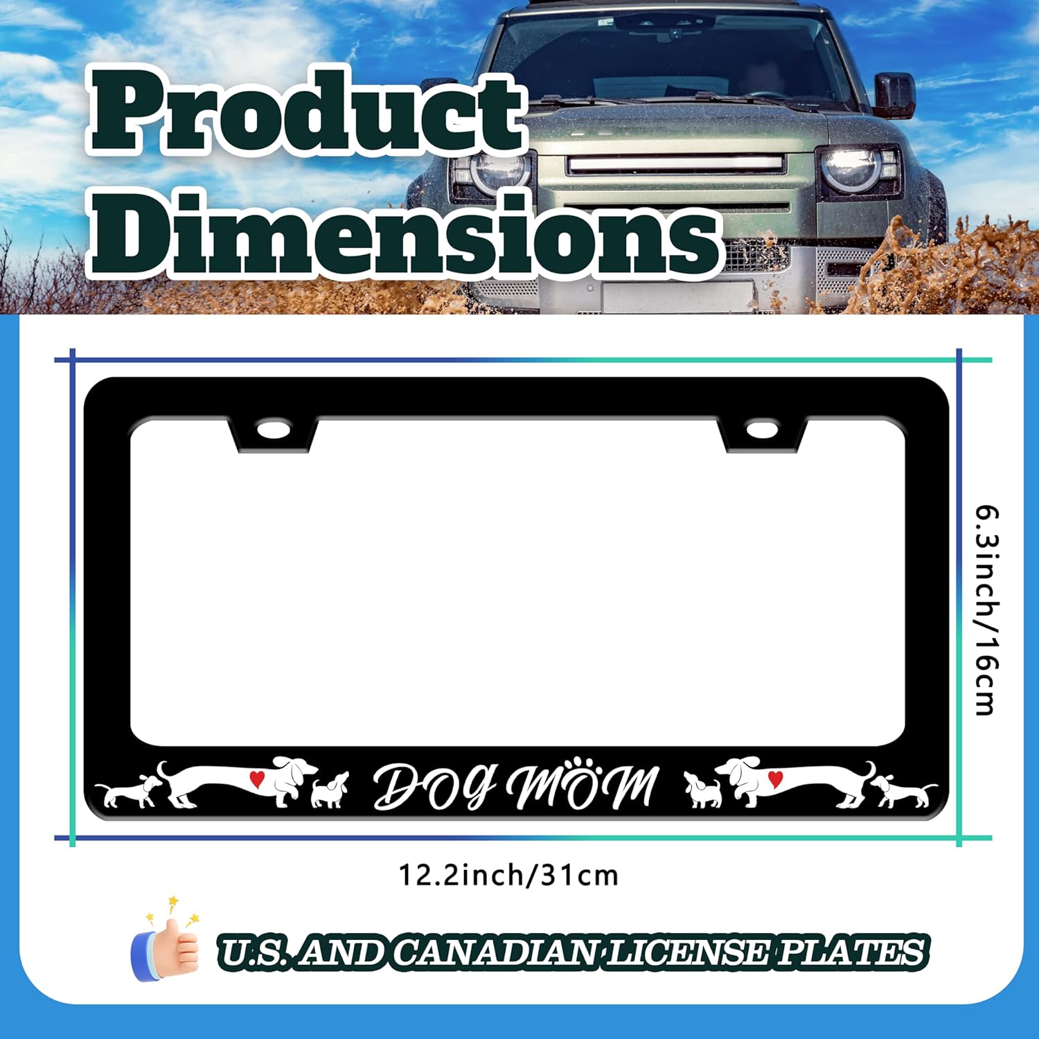Dog Mom License Plate Frame Cute Animal License Plate Holder for Front or Rear Car Tags Stainless Steel Funny Car Decoration with Screws 6.3 X 12.2 in